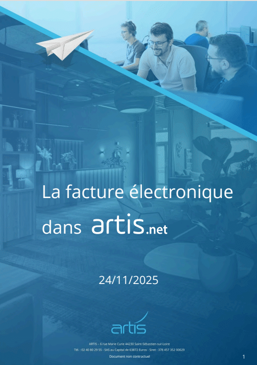 Janvier 2026. ARTIS souhaite informer et sensibiliser ses clients sur les étapes de mise en conformité de la nouvelle règlementation de la facture électronique au sein de l’ERP-CRM artis.net. Dès 2013, ARTIS a accompagné ses clients dans la dématérialisation de leurs factures. Depuis 2024, nous préparons activement la transition d’artis.net