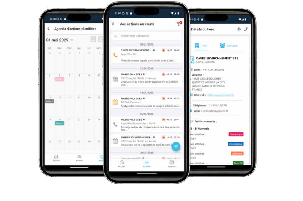 - Préparer vos rendez-vous en visualisant votre agenda, le détail des actions (RDV, appels,...) et les pièces jointes,